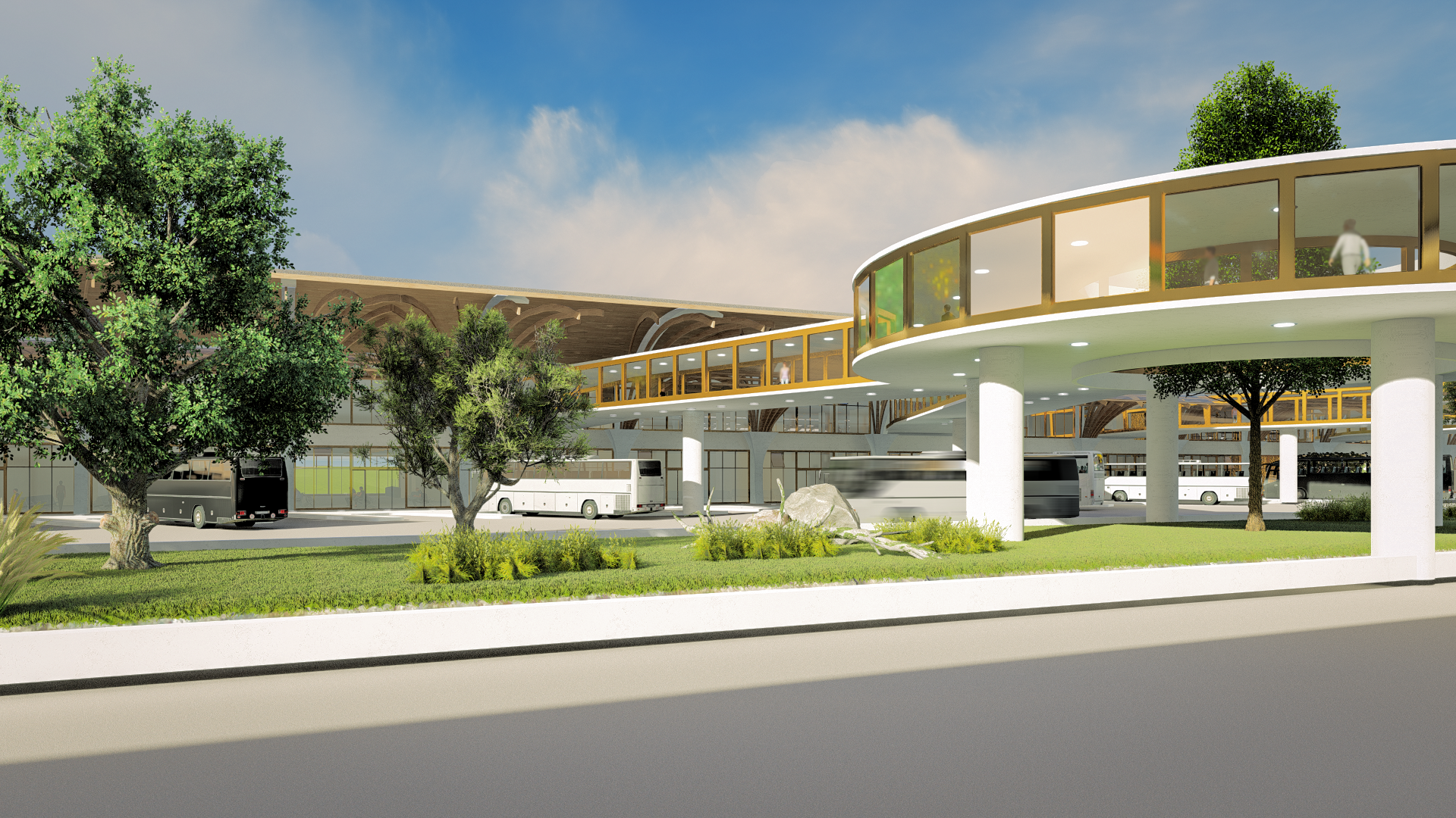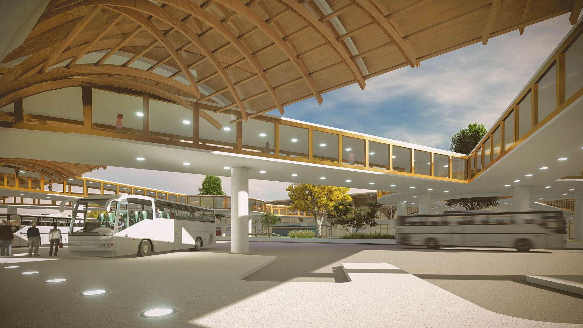 Projeto acadêmico produzido no 7º período do curso de Arquitetura e Urbanismo da PUCPR. Trata-se de uma estação rodoviária com um terminal de ônibus urbano anexo.
